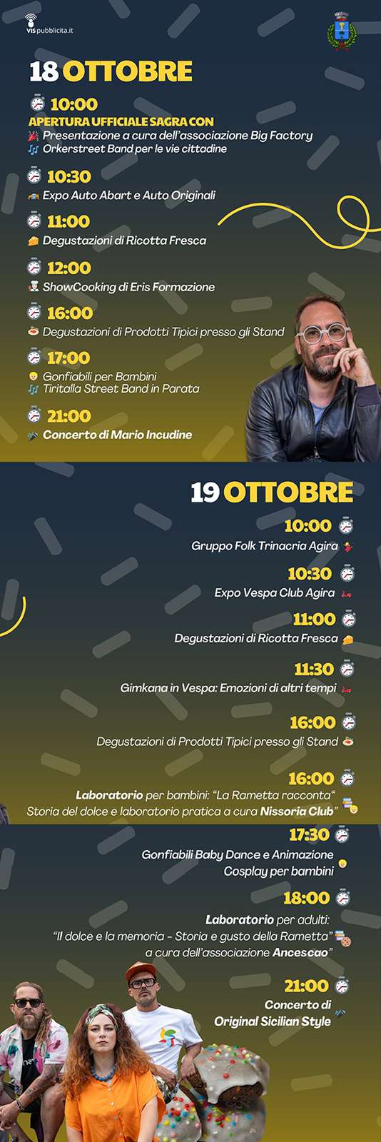 Gli organizzatori hanno pensato anche all’intrattenimento per ogni età: gonfiabili, cosplay e animazioni per i bambini, spettacoli, expo auto e show cooking per i curiosi e i buongustai. A rendere ancora più festosa l’atmosfera ci saranno gruppi folk, bande musicali e concerti che animeranno le serate, trasformando Nissoria in un luogo di festa condivisa.