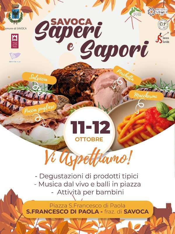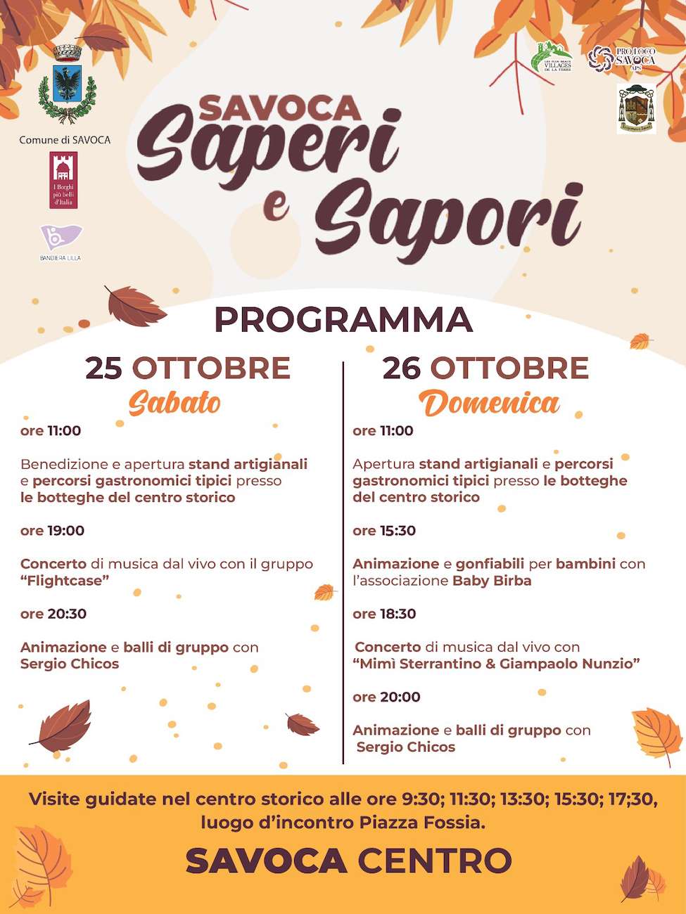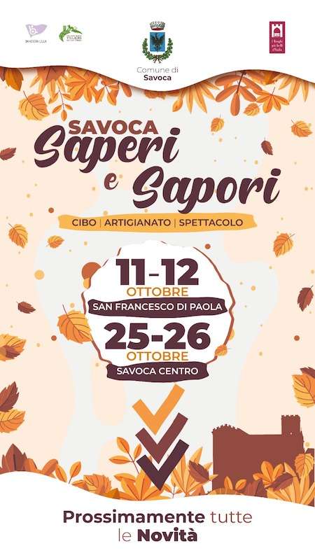 L’evento Saperi e Sapori a Savoca per promuovere le realtà agricole e artigianali del territorio, i sapori e i profumi d’Autunno con la degustazione di prodotti tipici, il divertimento per i più piccoli e gli spettacoli musicali.