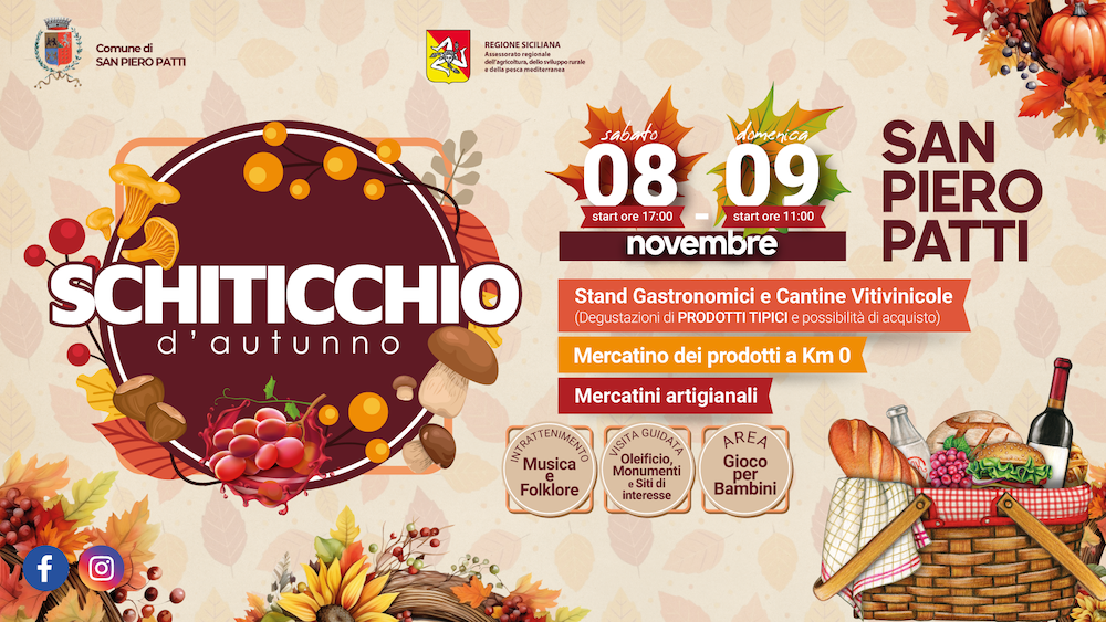 L’appuntamento con lo Schiticchio d’Autunno a San Piero Patti è fissato per l’8 e il 9 novembre, e si svolgerà nel suggestivo centro storico del borgo. Questa manifestazione ha l’obiettivo di far rivivere il piacere e la gioia di riunirsi attorno a una tavola imbandita con le prelibatezze della cucina tradizionale. Alla sagra d’Autunno di San Piero Patti, i visitatori potranno esplorare gli stand degli espositori di prodotti tipici e scoprire i numerosi manufatti dell’artigianato locale. Le cantine vitivinicole presenteranno i loro migliori vini, offrendo la possibilità di acquistare quelli preferiti. Con l’obiettivo di unire cibo, buon vino e cultura, i partecipanti alla festa di San Martino avranno anche l’opportunità di visitare il suggestivo centro storico, ricco di storia e opere d’arte, grazie a visite guidate all’oleificio, ai monumenti e ad altri luoghi di interesse di San Piero Patti. L’esperienza sarà completata da intrattenimento musicale lungo il percorso e da un’area dedicata al divertimento dei più piccoli, rendendo la sagra un’occasione di festa per tutta la famiglia.