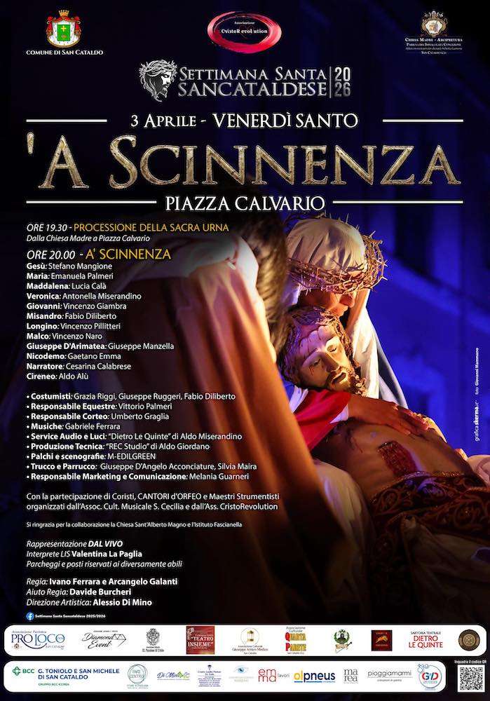 Il Venerdì Santo si potrà assistere all’incontro dell’Addolorata e di San Giovanni con Cristo morto e alla suggestiva processione dei gruppi statuari della Via Crucis, realizzati alla fine dell’800 dai fratelli Malecore, e dei personaggi viventi, che si recano al Calvario dove il Cristo viene crocifisso. Dopo il tramonto, si tiene la rappresentazione dal vivo della discesa di Gesù dalla croce (‘a scinnenza) e la sua deposizione nella Sacra Urna. Per finire, una lunga processione accompagna il Cristo morto sino in Piazza Matrice mentre l’Addolorata e San Giovanni fanno rientro nella chiesa di San Giuseppe.